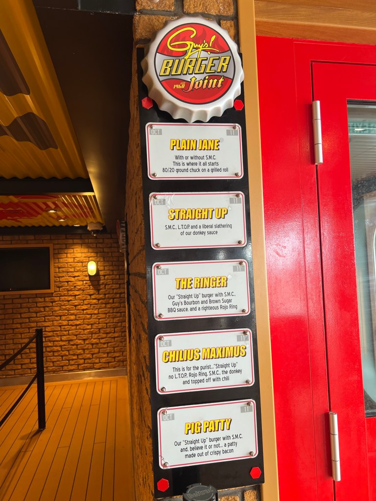 Today is the day everyone is ready for: embarkation day! The cruise line has the debarkation and embarkation process down so they are able to get all the current passengers off, and all the new passengers on, in a matter of hours. Boarding can start as early as 11 AM. The last time to board will vary based upon the ship in the port. It’s not uncommon that the cut off time is between 2 and 3 PM. Once on board, lunch is available on the Lido deck. My first stop is at Guys Burger, then I go into the Lido marketplace to get a salad and see what else is offered . The rooms won’t be available until sometime after 1:30. The ship feels the most crowded during this time as everyone is forced into the common area. Once the rooms are available, it never seems to feel as crowded again.